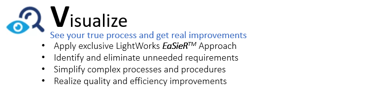 LightWorks has developed a practical and integrated approach to process improvement. Tradition methods are hard to understand and difficult to relate to your work. The EaSieRTM Approach gets results in an easy to understand and easy to apply method.